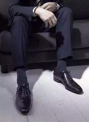1、不要穿短襪,襪子長度到小腿部位為佳,顏色最好與西裝顏色一致,這樣,坐下時,不會出現“大毛腿”露出的尷尬。