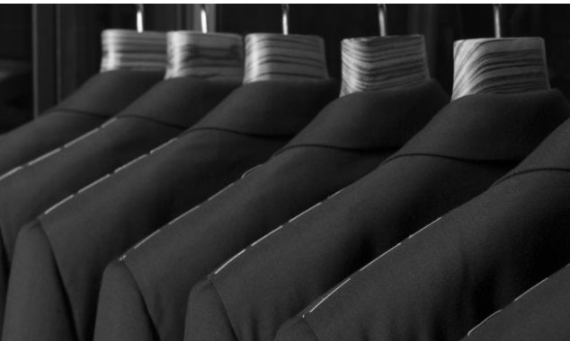 四、沾過汗液后,西裝久放很容易發(fā)霉,所以穿多的西裝在換季前需要干洗后存放。一般西裝上衣在穿著時里面都會有襯衫打底,所以如果穿的時間不長,上衣外套是可以不用洗。而褲子不同,褲子是貼身穿著的,很容易沾上汗液,所以哪怕只穿過一次,褲子也要干洗。純毛面料的西裝務(wù)必干洗,千萬不能水洗,否則衣服會嚴重皺縮,導(dǎo)致衣服報廢。干洗后塑料套要拆掉,使用無紡布衣套以達到透氣、防塵的效果。
